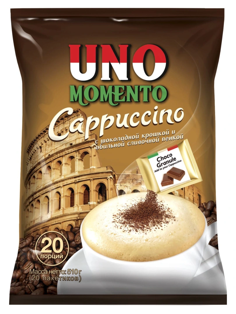 Растворимый кофейный напиток капучино с шоколадной крошкой «Uno Momento» (25,5грх20сашех12бл)