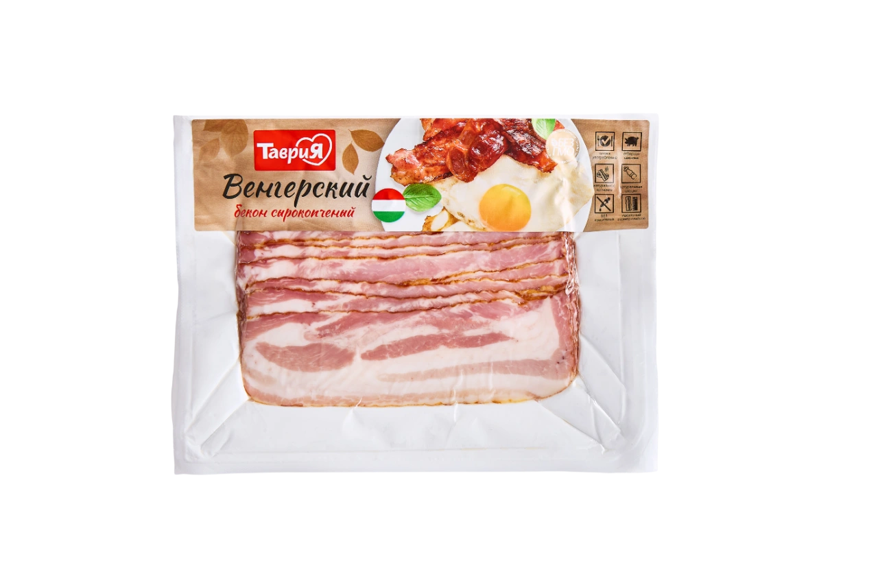 Только представьте себе: лакомые кусочки мяса со вставками нежного сала, прошедшие копчение на натуральной буковой щепе и приправленные ароматными специями. «Таврия» воплотила это в жизнь и представляет вашему вниманию «Бекон Венгерский». Своим вкусом деликатес способен подарить высшее гастрономическое удовольствие, его вкус оценят даже самые взыскательные гурманы. «Венгерский» в нарезке уже готов к употреблению, но некоторые все же предпочитают поджарить тонкие кусочки, чтобы получить золотисты Состав:свинина
