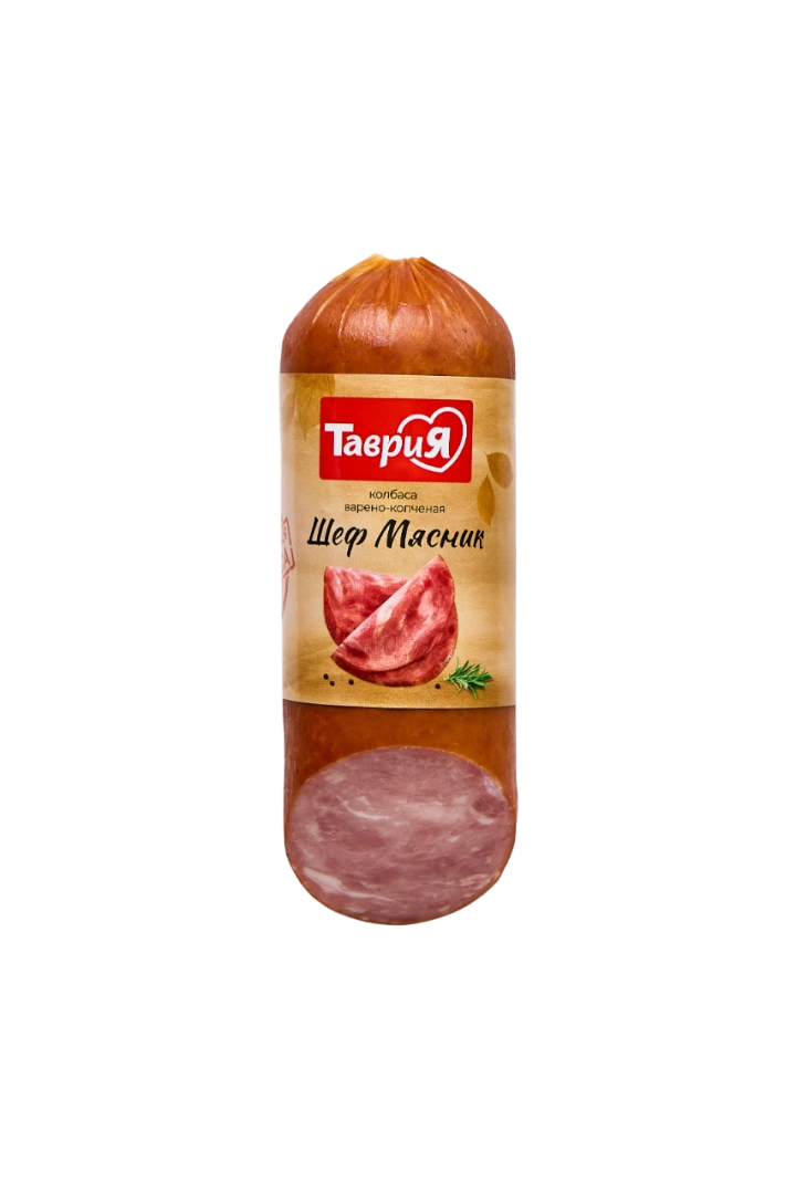 Варено-копченую колбасу «Шеф мясник» по-настоящему можно назвать шедевром! Просто десять из десяти! Не раз отмечена наградами и высшим баллом на выставках.Крупнокусковую свинину в составе, сдобренную душистым перцем полюбит даже взыскательный покупатель. Натуральный состав оценят гурманы и любители настоящих мясных блюд. Пропитанная благородными нотками копчения уместна на праздничном столе, а так же будет отлично смотреться на повседневных бутербродах. Состав:свинина