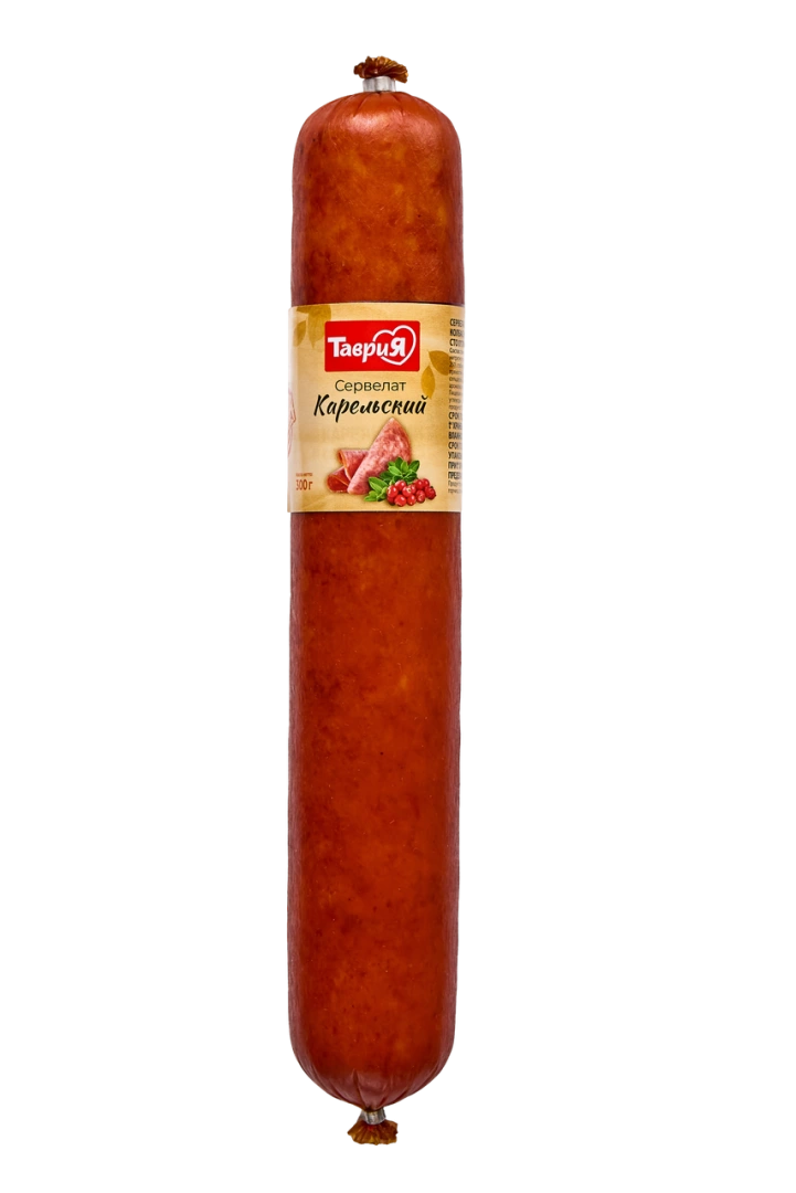 Классика в новейшей истории продуктов питания страны – сервелат «Карельский». Упругий, сочный, но при этом манящий своим ароматом и самое главное – сделанный из настоящего мясного ассорти. Эта колбаса от «Таврии» любима десятками тысяч гурманов в России. Подтверждением того, что любовь эта заслуженна, является золотая медаль в дегустационном конкурсе на выставке «Агрофорум-2015». В составе сервелата: свинина, говядина и куриное филе. Состав:курица, свинина