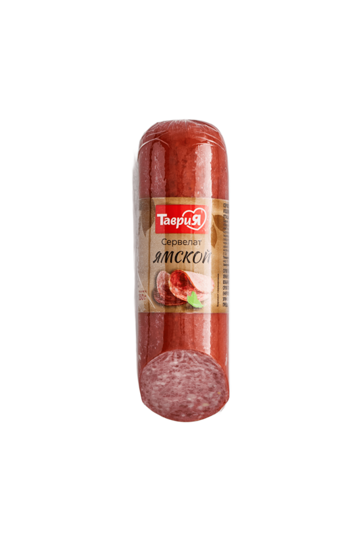 Сервелат «Ямской». Доступный сервелат на каждый день. Сытный, с приятным ароматом пряностей и лука. Не приторный, не сухой — в самый раз для семейного ужина или перекуса на работе. Состав:курица, свинина, говядина
