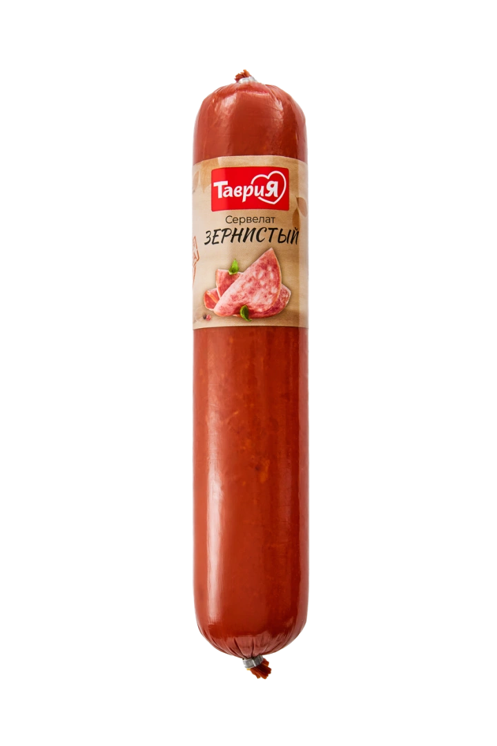 Сервелат «Зернистый» - придется по вкусу всем, кто предпочитает яркие эмоции. Повара «Таврии» усовершенствовали привычный сервелат – в рецепт классической варено-копченой колбасы добавили в особой пропорции чеснок и специи. В конечном счете получился сервелат, нежные кусочки которого словно растворяются во рту. Стоит ли говорить, что именно по этой причине «Зернистый» уплетают за обе щеки люди всех возрастов? Состав:свинина, курица